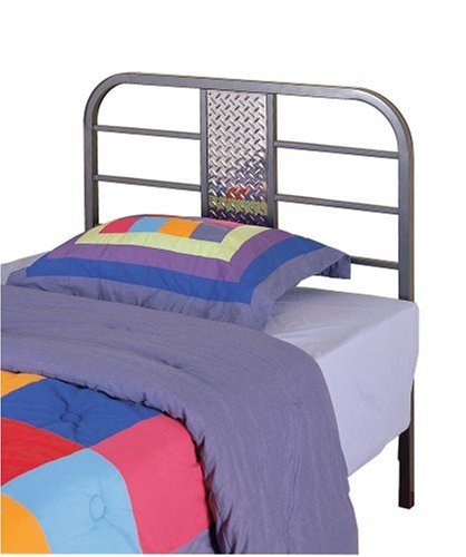 Where ordinary youth bedroom furniture becomes extraordinary sleep, study and storage. This twin headboard only features simple contemporary rounded corner styling, a textured chrome center plate with horizontal square tube slats on either side. The heavy gauge powder coated tubular steel frame and textured chrome decorative plate give this contemporary headboard the rugged construction to survive in any youth environment. Fully assembled. Read more...