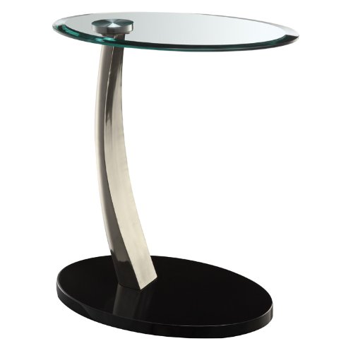 This Oval Chairside Table adds function and style to any room. The sleek design is finished in "Brushed Chrome" with black poly base and clear glass top. The perfect table for any chair or sofa side, sure to fit into any décor. Some assembly required. Read more...